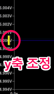 커서를 움직이면 x축(시간)과 y축(전압) 값을 알 수가 있습니다.