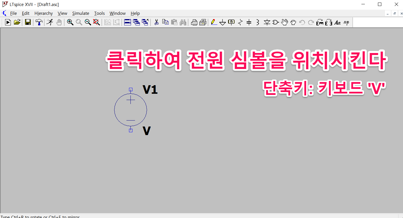 클릭하여 전원 심볼을 위치시킵니다. F2로 하지 않고도 키보드 'V'를 누르면 전원 심볼이 나옵니다.