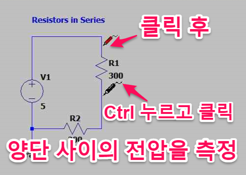양단 사이의 전압을 구하려면 기준을 클릭한 후 Ctrl 키를 누르고 차이를 측정할 곳을 클릭합니다.