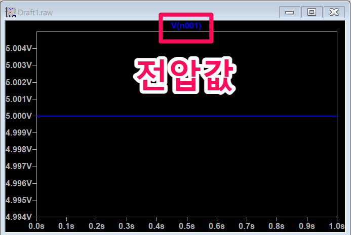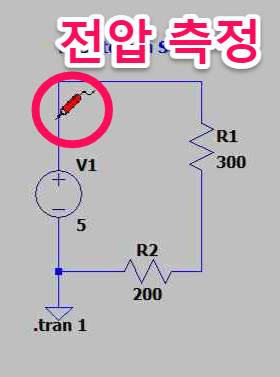 회로에 마우스를 갖다대면 프로브 모양으로 커서가 바뀌어 전압을 측정할 수 있습니다.