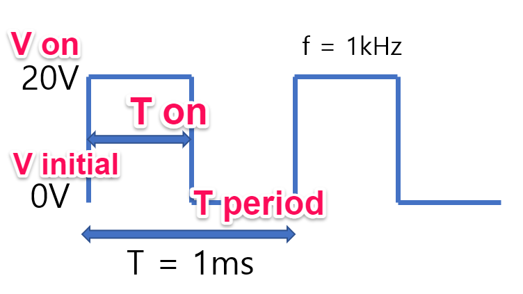 Pulse(구형파) 신호를 주기 위해서 다음과 같이 진행합니다.